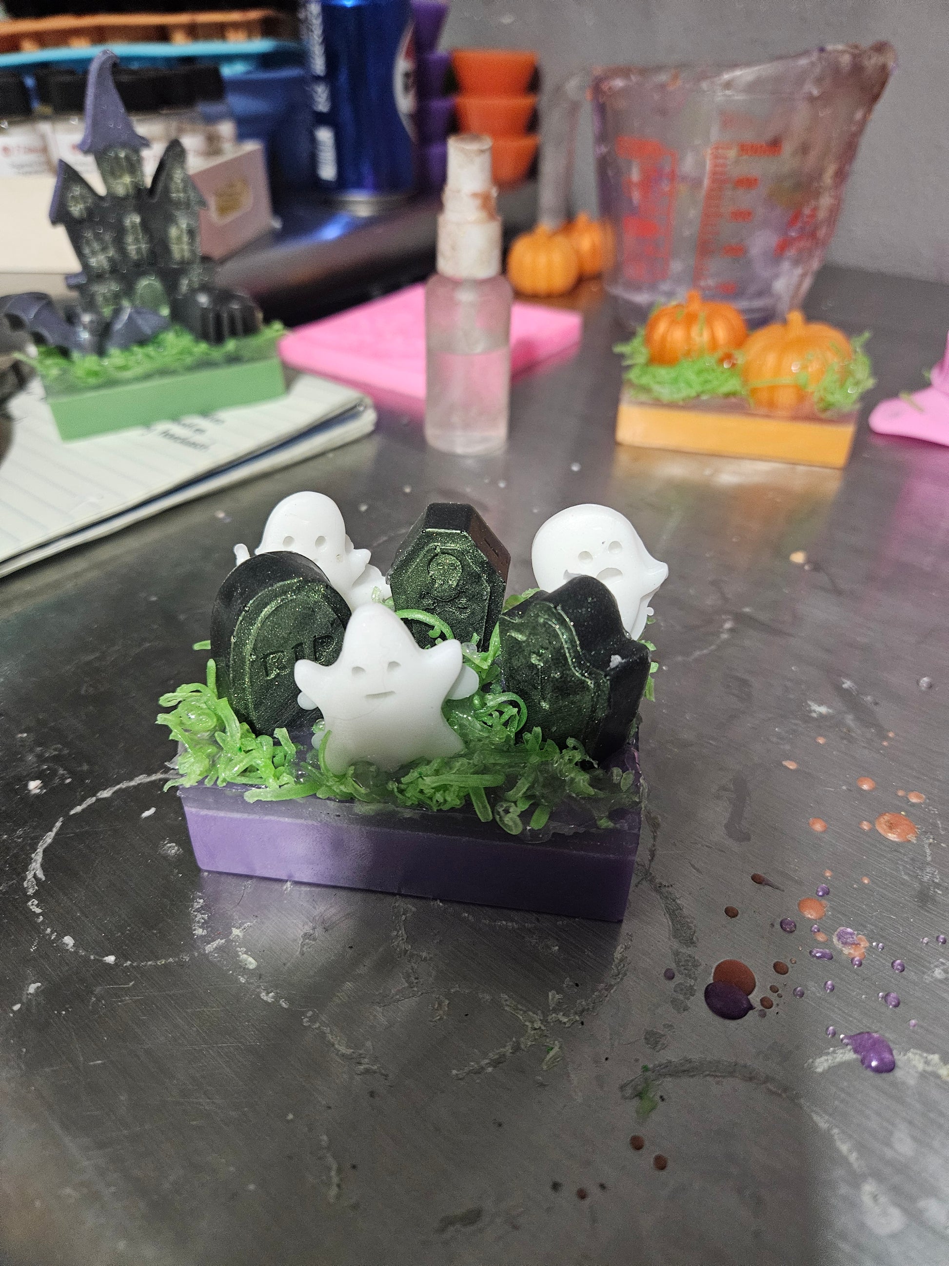 Bring a little spooky fun to your bath time with the Ghost in the Graveyard soap bar. Infused with the sweet, comforting scent of blueberry pie, it turns cleansing into a playful treat. Perfect for those who love a dash of mystery and a burst of fruity fragrance in their routine. Let this ghostly delight lift your spirits and leave your skin feeling fresh and sweetly scented.