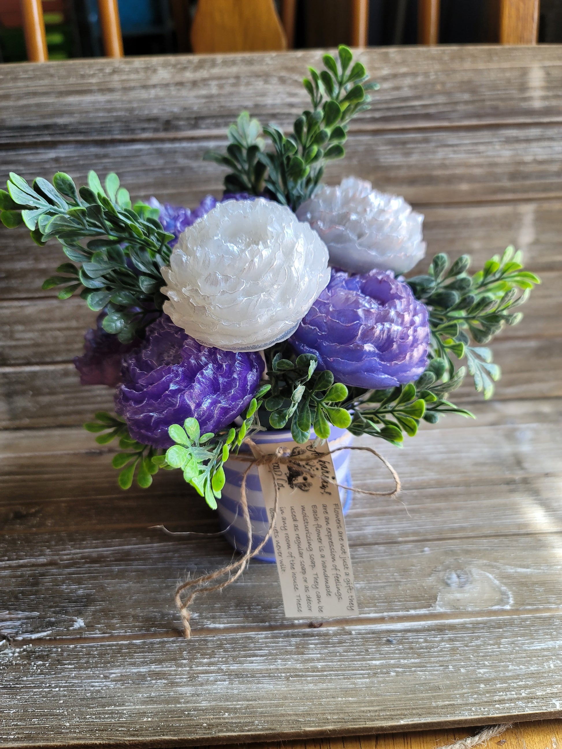 There's nothing better than fresh flowers, and ones that will never wilt and smell great are even better. Our soap flowers are handmade to order, they smell fantastic and last a long time.