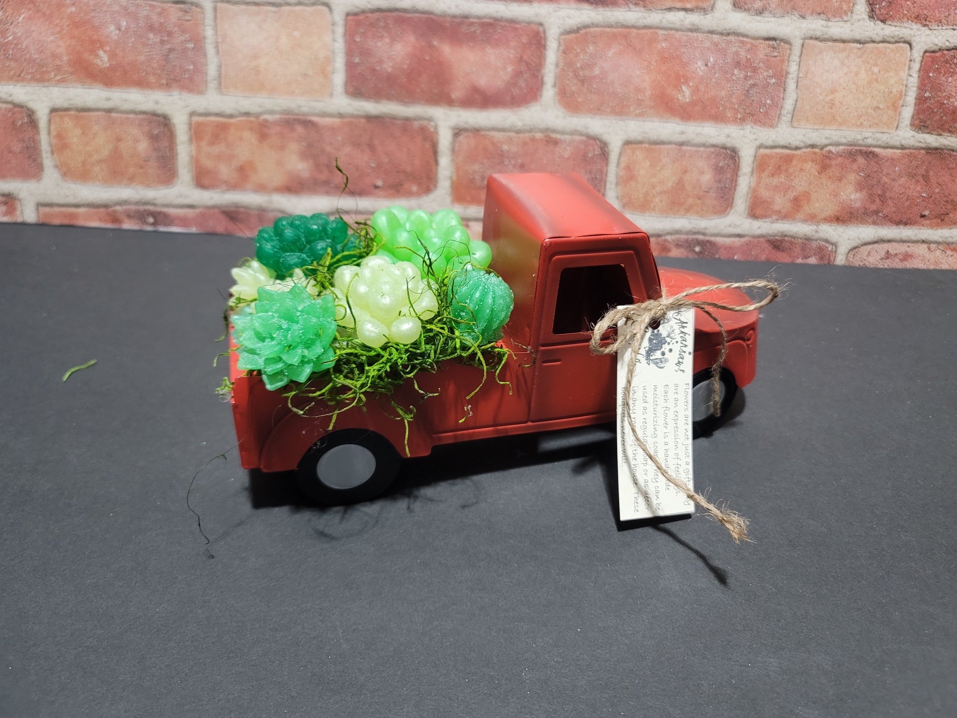 Two classics our little red truck and our brilliant succulents come together for one beautiful arrangement. Perfect for any succulent lover or little red truck lover.