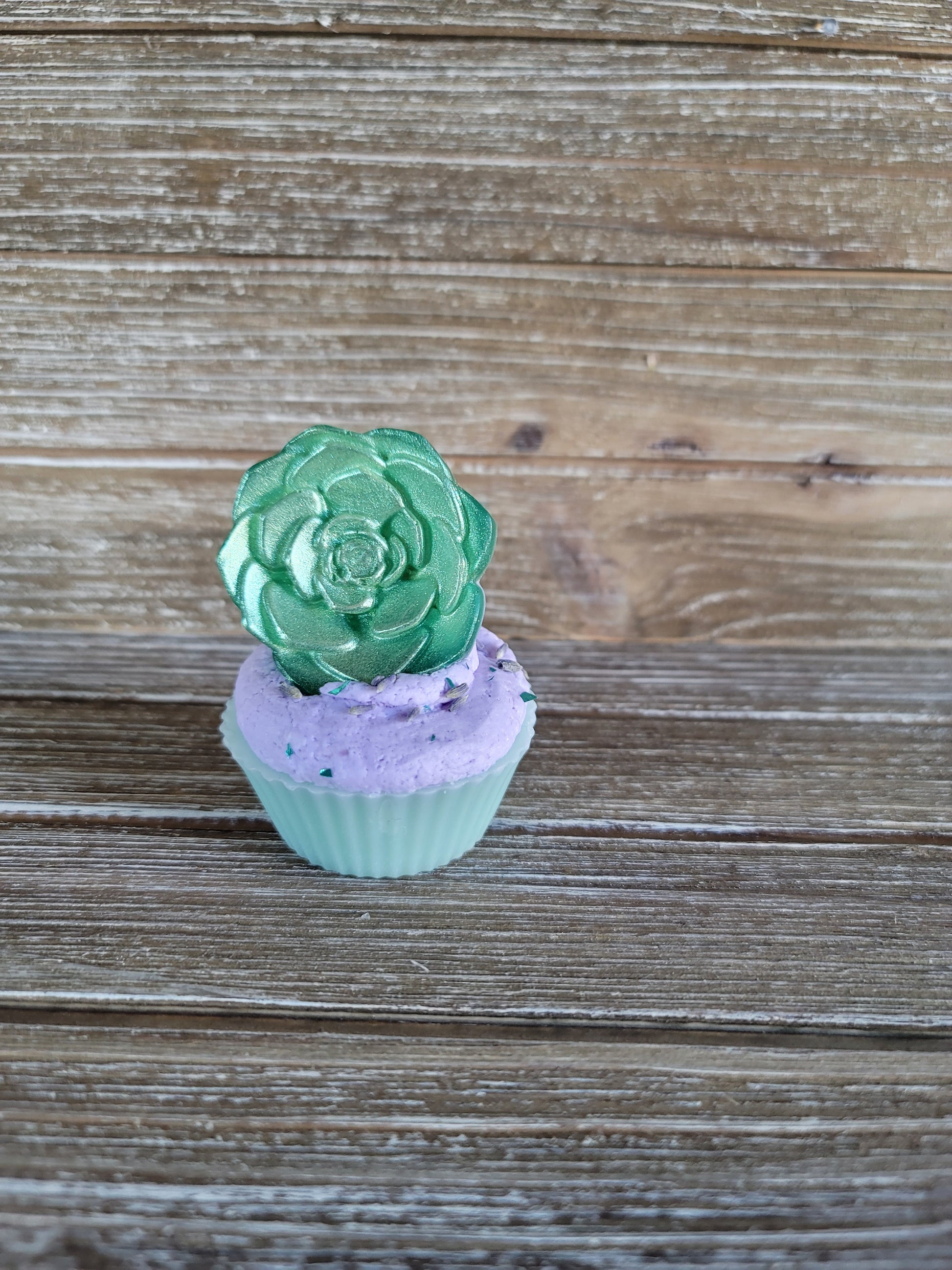 Swirls of Eucalyptus, rosemary, peppermint and sage are topped with lavender whipped frosting. A decorative Eucalyptus scented succulent finishes this amazing gift.